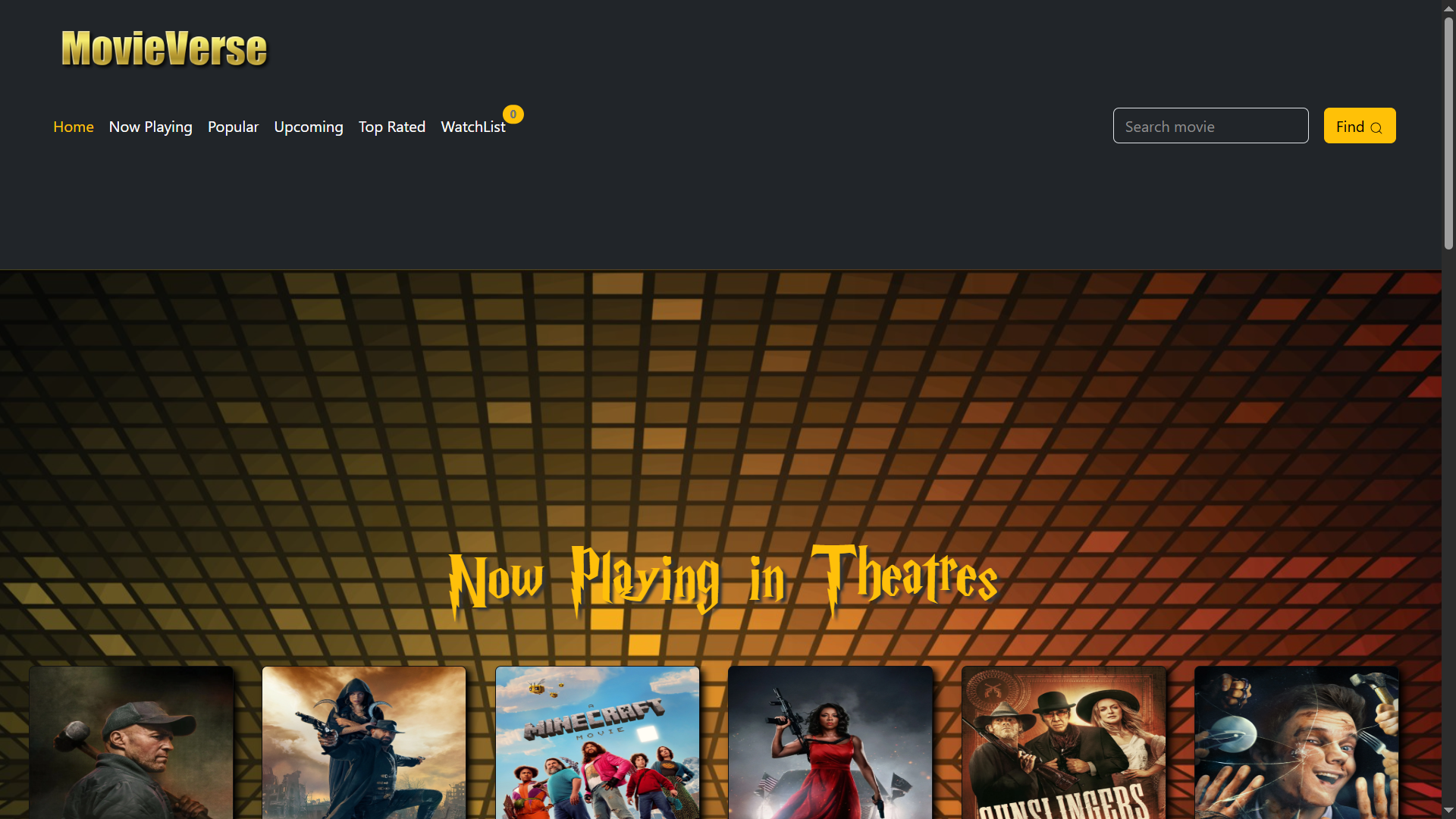 A movie discovery platform that allows users to explore films across various genres, search for specific titles, and build a personalized WatchList. With a clean and intuitive interface, MovieVerse offers an enjoyable and organized way to keep track of your favorite movies.