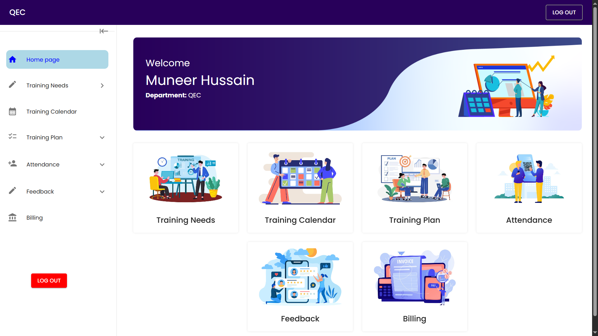 A web-based platform designed to streamline employee training processes. It allows administrators to schedule and manage training sessions, track employee attendance, and collect structured feedback after each session to measure effectiveness and improve future trainings.